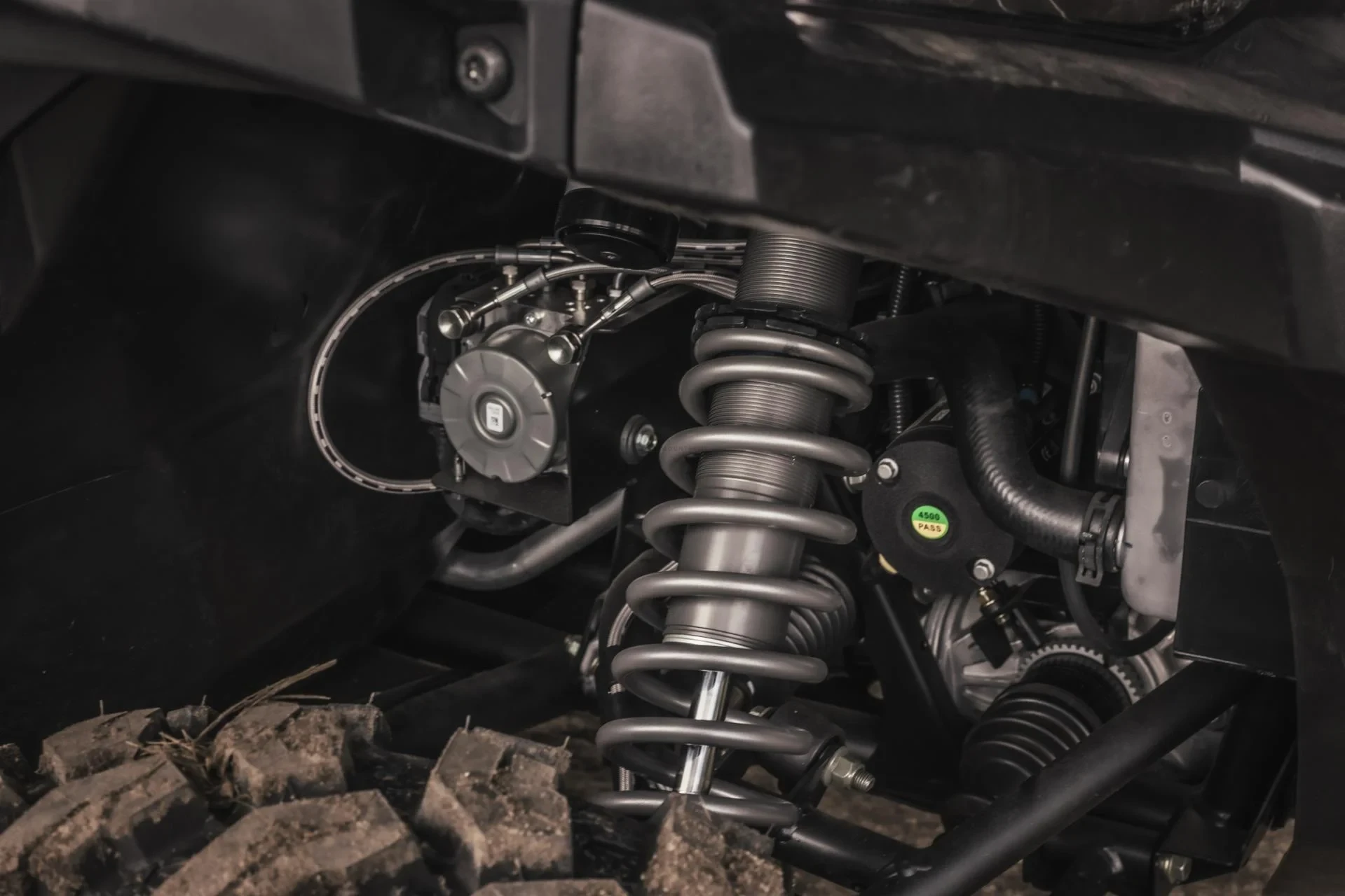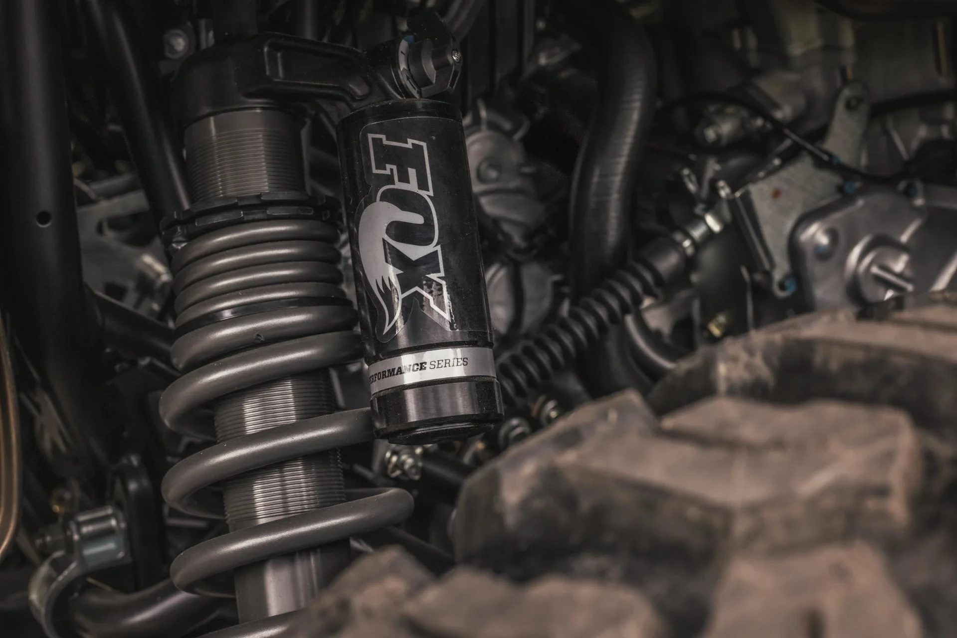 - Przednie Zawieszenie: Podwójny wahacz A-Arm, stabilizator poprzeczny FOX Podium X Shocks Skok zawieszenia 31.1 cm