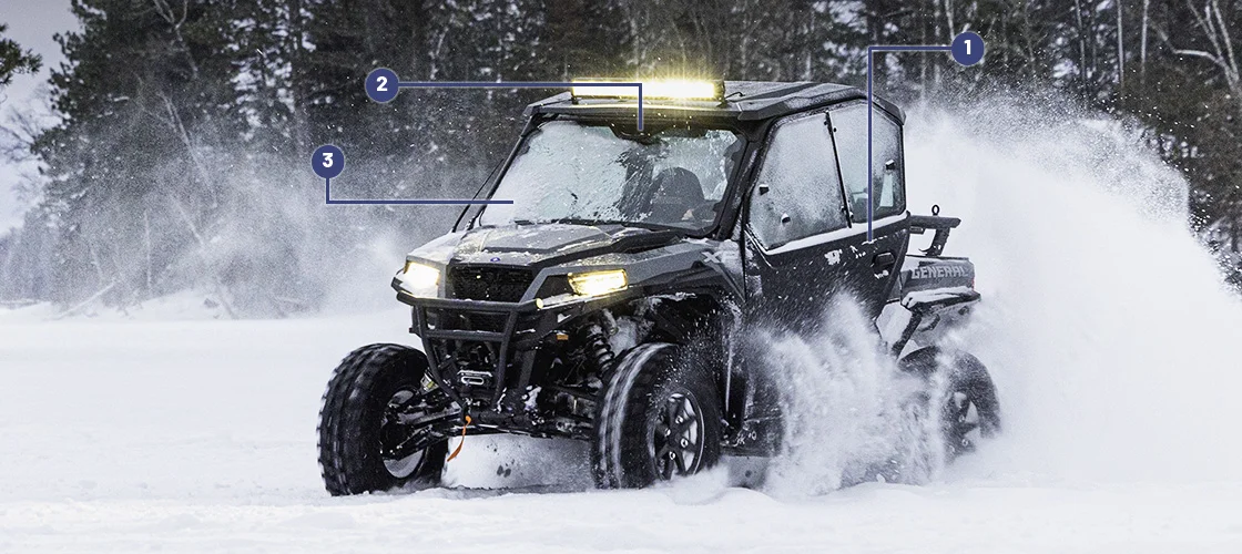Polaris General™ 1000 deluxe to pojazd off-road, który łączy sportową jazdę i użytkowość. Jego potężny silnik o mocy 100 km i jego lekka masa sprawia, że tym pojazdem można się przemieszczać wszędzie. Tylne i przednie zawieszenie posiada stabilizator poprzeczny co zapewnia kierującemu maksymalny komfort. Podsumowując, rewelacyjna maszyna!