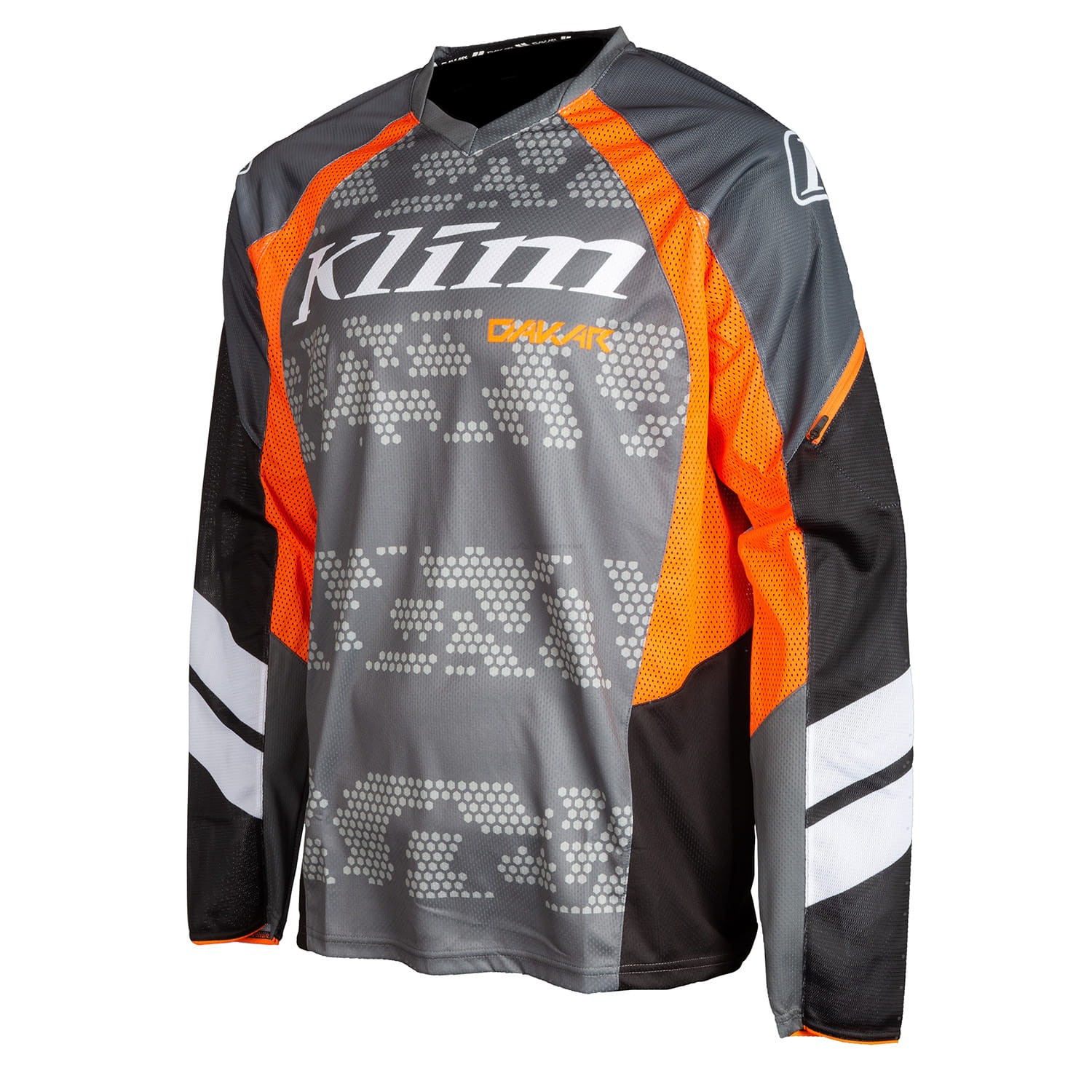 Nowy projekt koszulki Dakar łączy w sobie trwałość, znakomity przepływ powietrza i znacznie poprawiony zakres ruchu, aby sprostać najcięższym warunkom w terenie. Koszulka ta ma wytrzymałe rękawy z elastycznej siateczki z dodatkowym panelem z materiału stretch na całej długości, który zapewnia swobodę ruchów. Otwarta siateczka pod pachami, po bokach i dolnej części tułowia zapewnia większy przepływ powietrza, dzięki czemu jest idealna do agresywnej eksploracji terenu. Zapinana na suwak kieszeń na ramieniu pomieści drobiazgi niezbędne podczas jazdy.