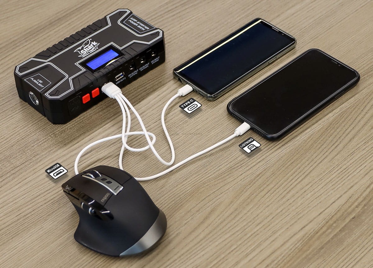 - Wszechstronny i wielofunkcyjny; dostarcza energię do rozruchu silnika, ładuje laptopy i inne urządzenia mobilne
