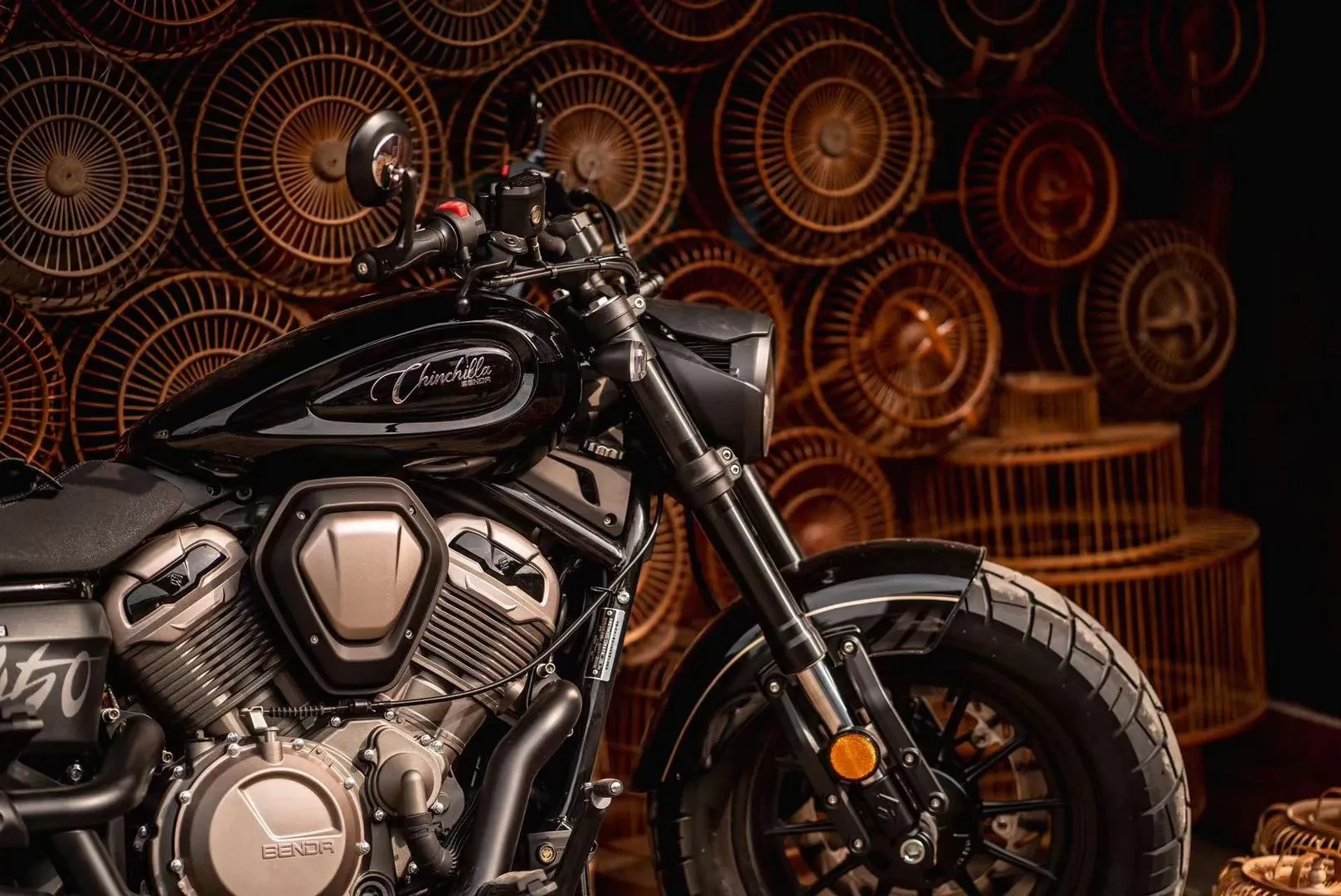 Chinchilla 500 na nowo definiuje klasę sportowch cruiserów, czerpiąc inspirację z motocykli o większej pojemności. Muskularne linie inspirowane klasycznymi cruiserami i chopperami, połączone z masywnymi oponami to wizytówka modelu Chinchilla. Komfortowe siedzenie, szeroka kierownica i utrzymane w mrocznym klimacie detale oraz efektowne i nowoczesne serce V2 dopełniają całości współczesnego cruisera.