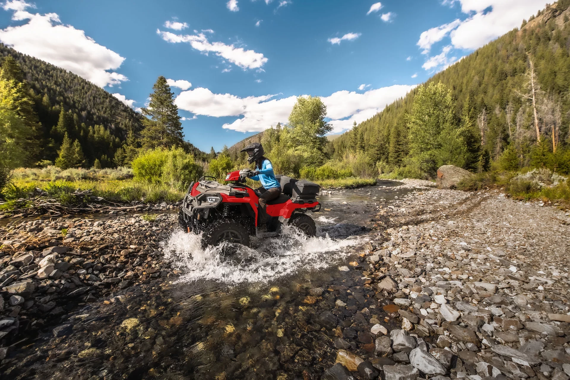 Nowy akumulator, umiejscowiony pod maską zapewnia łatwy dostęp do ładowania. 26’’ opony zostały wzmocnione do 6 warstwowej konstrukcji. Najbardziej zintegrowany schowek wśród pojazdów ATV to 24 litry pojemności które pozwalają schować mnóstwo sprzętu i nadal mieć do niego dostęp, nawet z przedmiotami przyczepionymi do pokrywy. Wygodne i praktyczne zawieszenie oraz napęd na wszystkie 4 koła pozwolą Ci dotrzeć w najbardziej niedostępne miejsca.