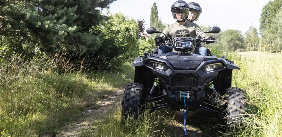 Nowy Sportsman 2UP został również wyposażony w 27-calowe opony Duro osadzone na 14-calowych aluminiowych felgach, które nie tylko podkreślają sportowy charakter maszyny, ale przede wszystkim gwarantują doskonałą przyczepność i odporność w każdym terenie – od miękkiego błota po kamieniste podjazdy.