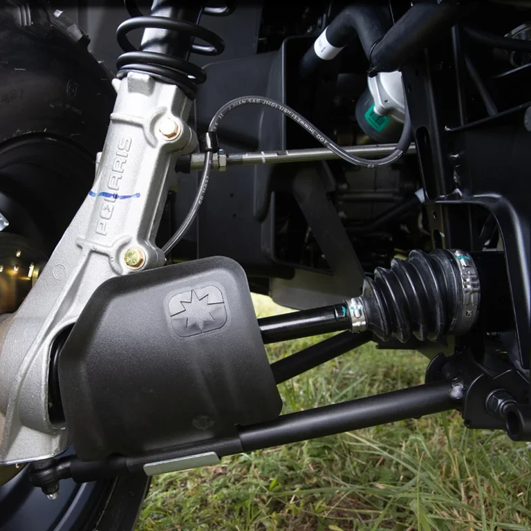 Nowy Sportsman 570 EPS 2UP porusza się na 25-calowych oponach z agresywnym bieżnikiem, które gwarantują przyczepność w zmiennych warunkach i stabilność nawet przy pełnym obciążeniu. Aluminiowe felgi podkreślają nowoczesny design maszyny i zapewniają trwałość przy zachowaniu niskiej masy.